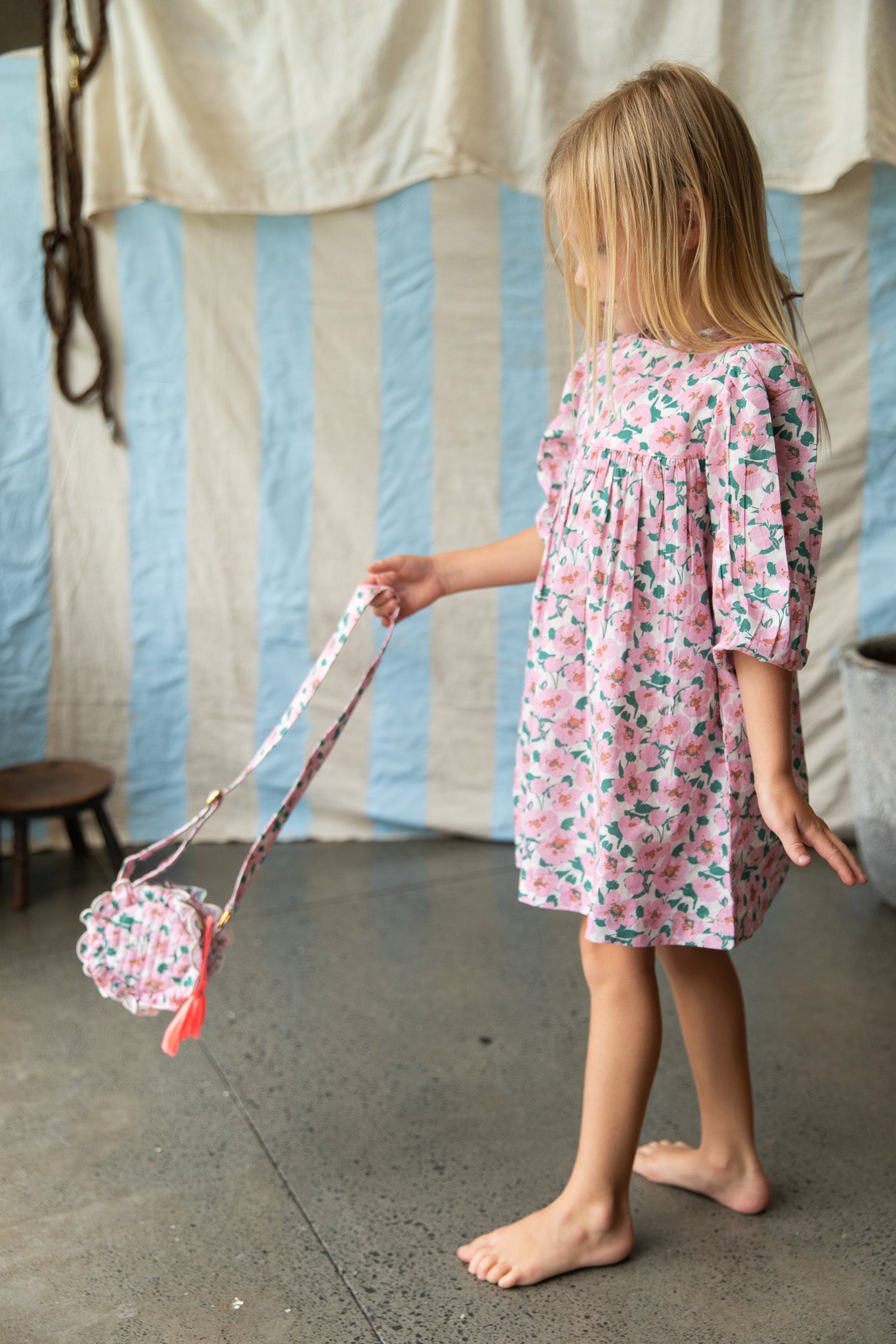 Make sure you have your pocket money handy or stash seashells and treasures from your big adventures.  Bloom has a matching adjustable strap, gold zip closure and contrasting Fluro tassel.
