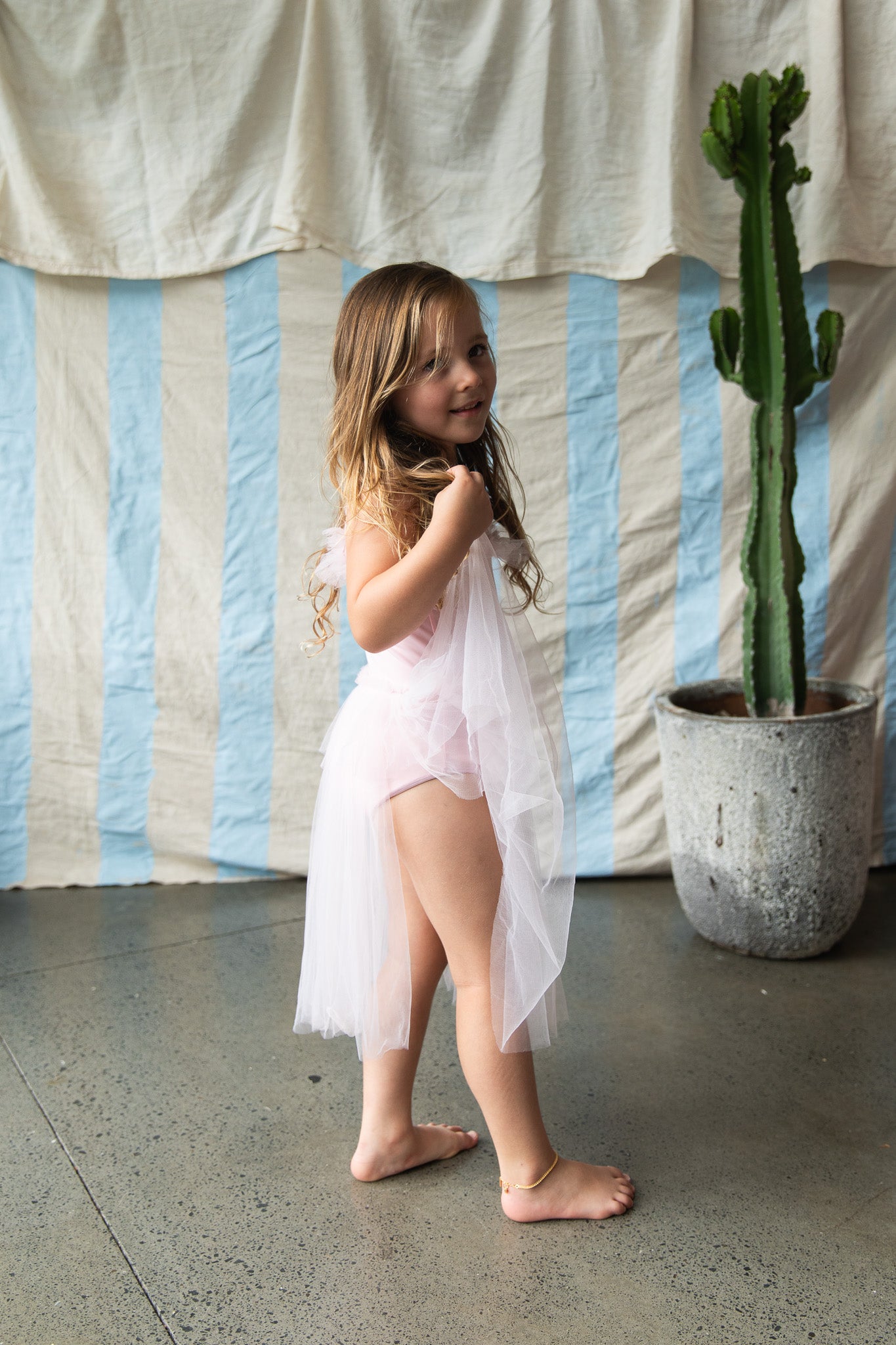 Dance, play and make believe in the stunning Eleanore.  Perfect for ballet class, birthday parties and dress ups in this seasons’ exquisite new colour offerings.  Already a fan favourite, with her soft tule and shimmering spandex she’s sure to spark more imaginations and dance parties this summer. Pull-up fit make her easy for independent dressers.