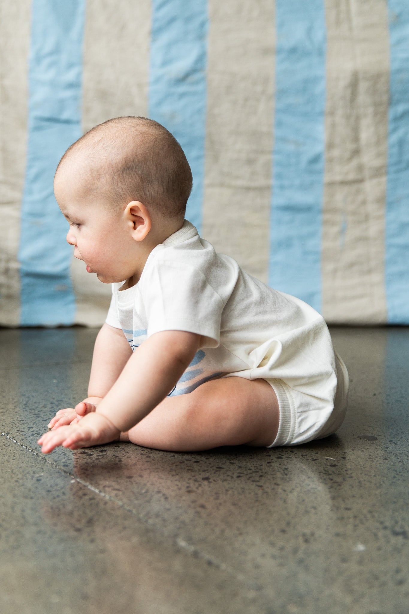 Our T-Shirt Style romper is crafted from super soft cotton, this baby romper promises ultimate comfort with its relaxed fit that allows your little one to move freely and play happily. The super cute print adds a burst of fun, making it an ideal choice for everyday adventures. Soft on the skin and easy to wear, this romper brings both style and ease to your baby's wardrobe