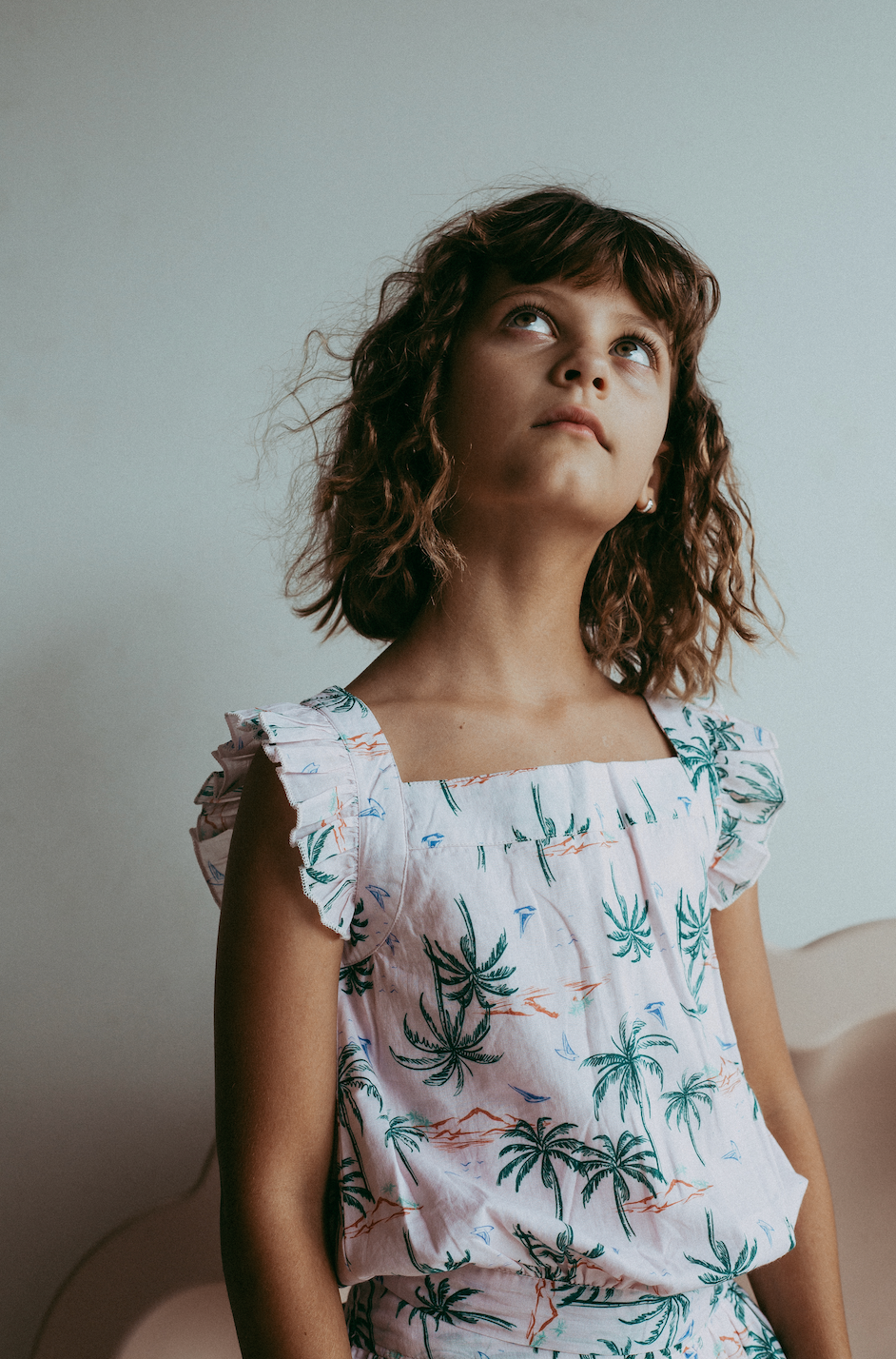 The sweetest summer top with a difference.  Made from fully lined cotton voile. Pipi has an open back for the coolest wear, with fabric tie and gold button fastenings. Looks divine matched back with our Pearl shorts, Talia skirt or perfect for wearing with denim.