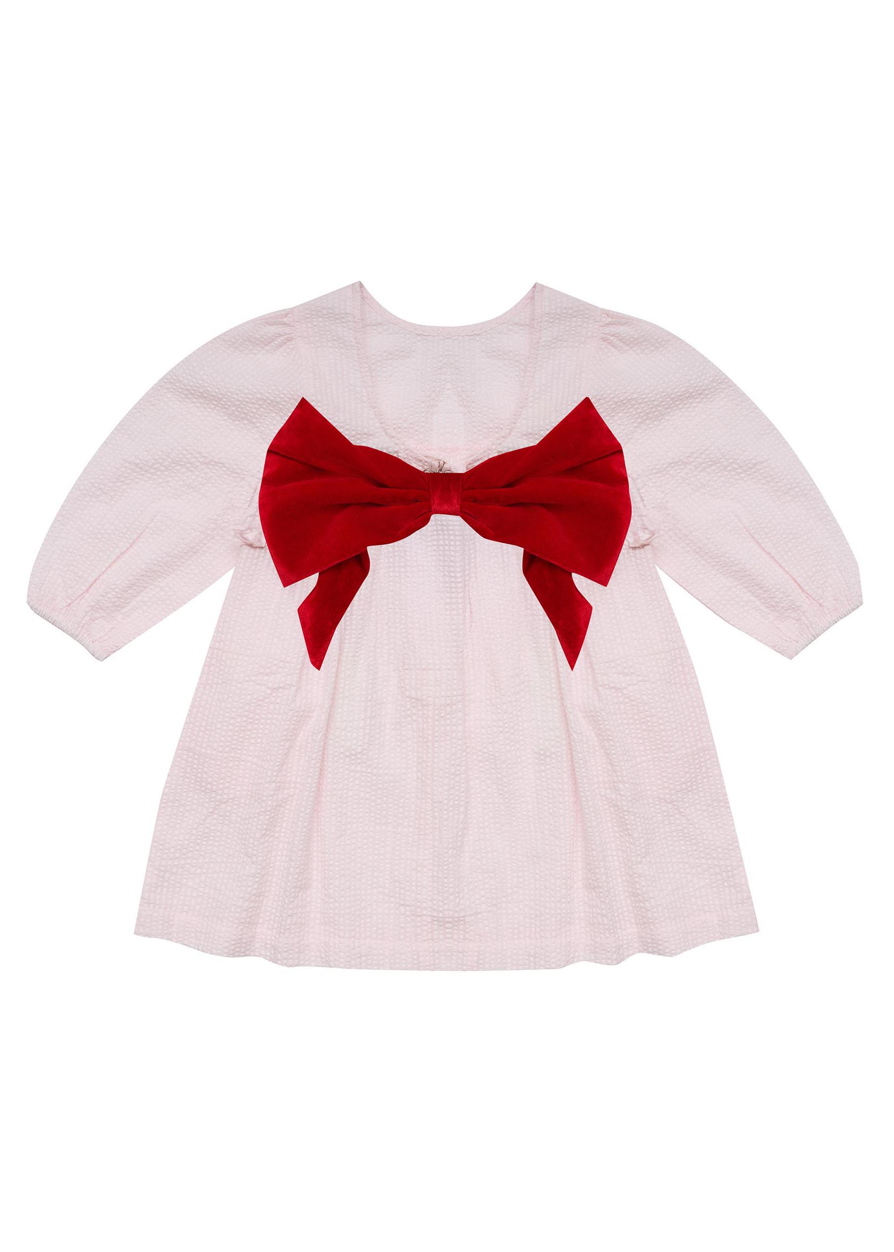 Its breathable fabric ensures all-day comfort, while the playful puff sleeves and big red bow detail on the back adds fashionable fun touch.