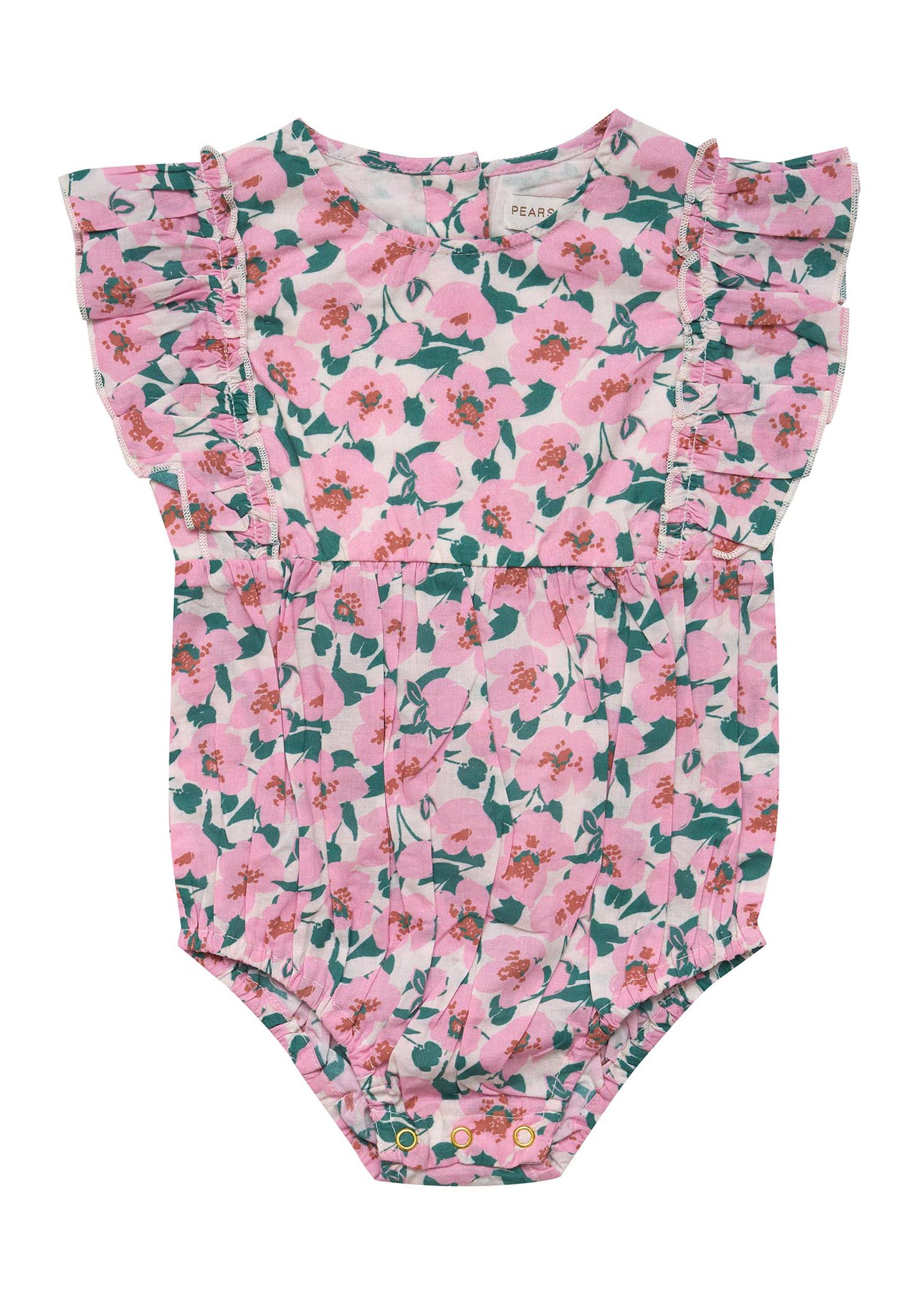 Made in our Sakura print this soft cotton voile romper will be a summer staple. With adorable flutter sleeves, easy snap and back openings. Perfect for every day or a special celebration.