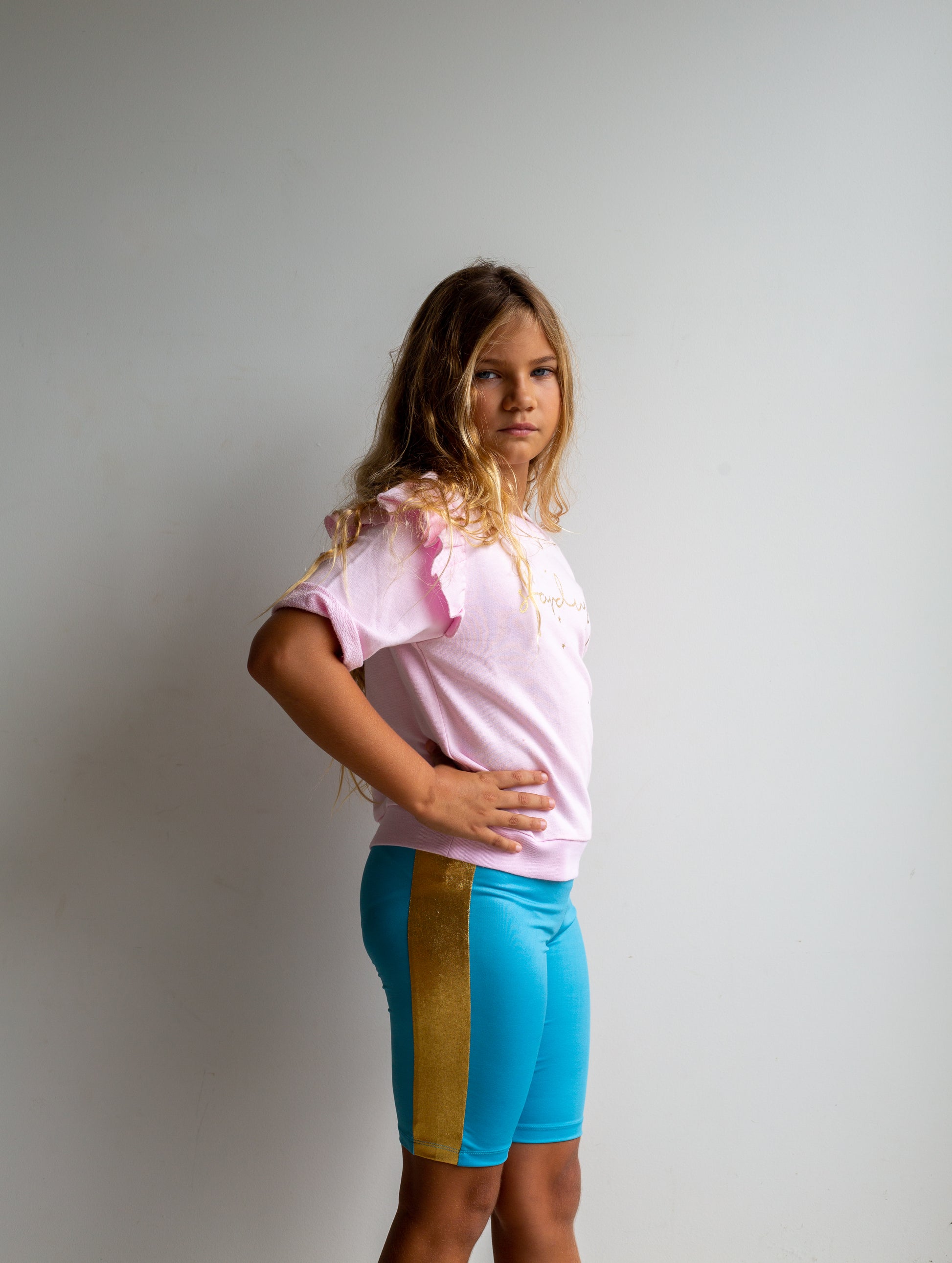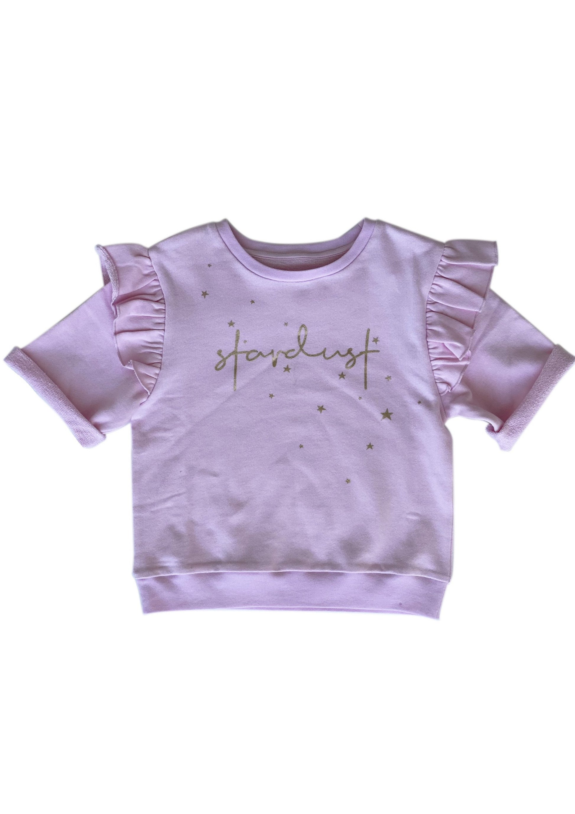 Cropped, rolled sleeves under a shoulder ruffle for trans-seasonal comfort and an edgy style.