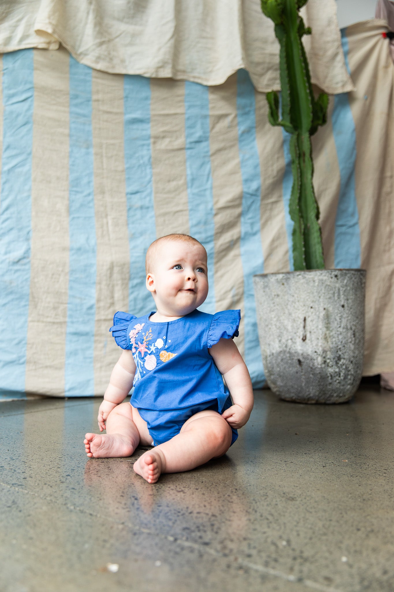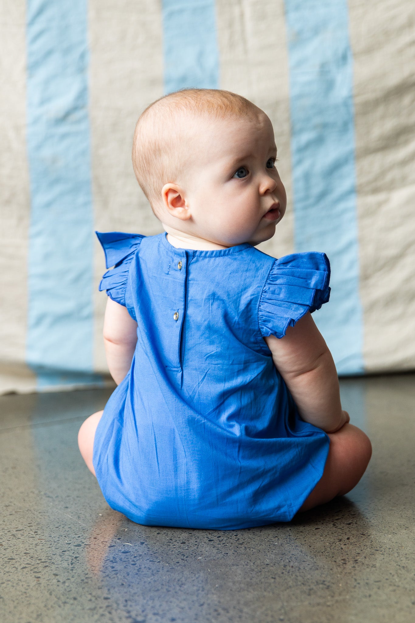 This elegant baby romper features graceful flutter sleeves that lend a refined touch to your little one’s attire. Crafted with practicality in mind, it includes a snap opening to facilitate effortless nappy changes. Subtle yet exquisite delicate embroidery adds an element of timeless sophistication, making this piece ideal for both everyday wear and special occasions.